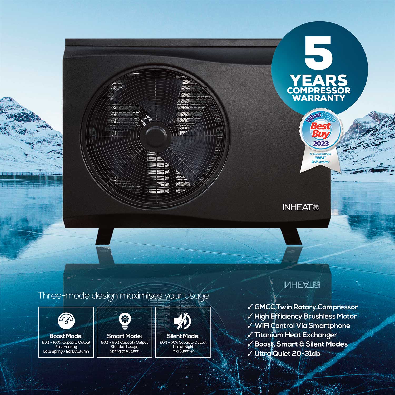 Unwind in your hot tub without worrying about high energy costs. iNHEAT air-source heat pumps offer an energy-efficient solution to heat your hot tub all year round, at a fraction of the cost of conventional heaters, even when the outside temperature reaches -15c!**
