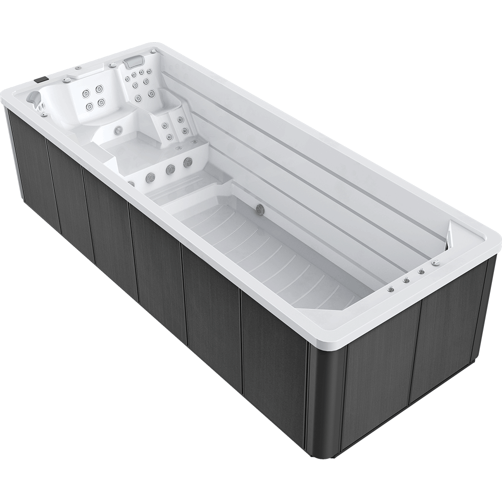 Unleash the experience of a five-star swimming pool. Unlike any other swim spa on the market, Our new inverter system allows us to use 3.5hp variable speed pumps and a 3” water jet pipe which can deliver up to 20,000 litres of water per minute. This results in saving up to a staggering 70% on electricity cost. Using this technology allows us to deliver a smoother flow of water without any white water waves, at a fraction of the cost of a conventional swim spa.