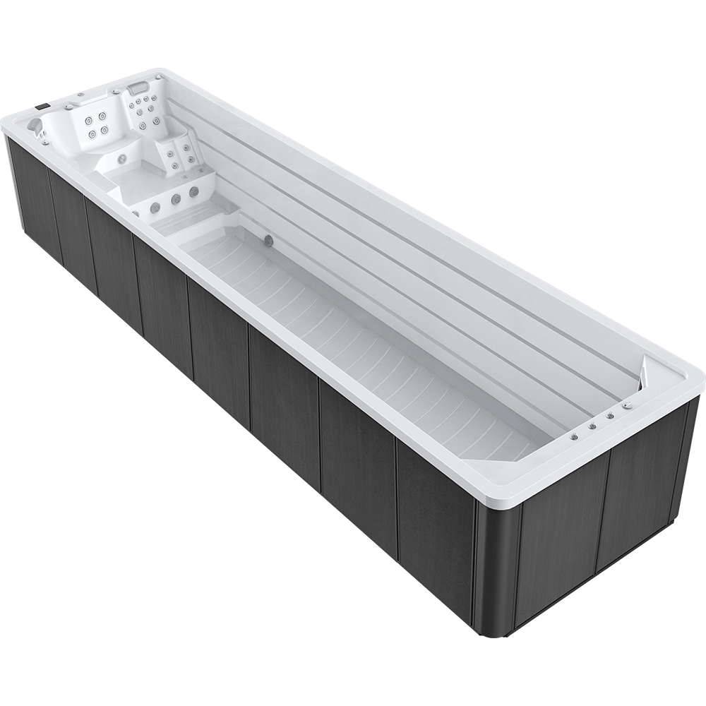 Unleash the experience of a five-star swimming pool. Unlike any other swim spa on the market, Our new inverter system allows us to use 3.5hp variable speed pumps and a 3” water jet pipe which can deliver up to 20,000 litres of water per minute. This results in saving up to a staggering 70% on electricity cost. Using this technology allows us to deliver a smoother flow of water without any white water waves, at a fraction of the cost of a conventional swim spa.